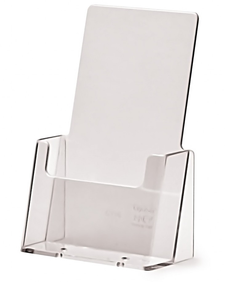 - Kirkkaasta akryylistä valmistettu esitepidike.