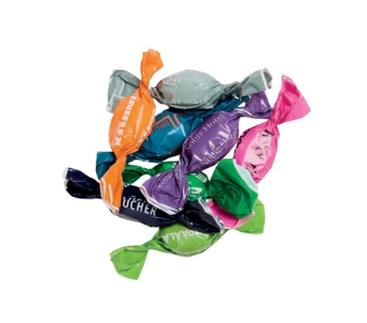 Hakusanat: hedelmäkarkki, hedelmäkarkit, hedelmäkaramelli, hedelmämakeinen, painatus, painatuksella