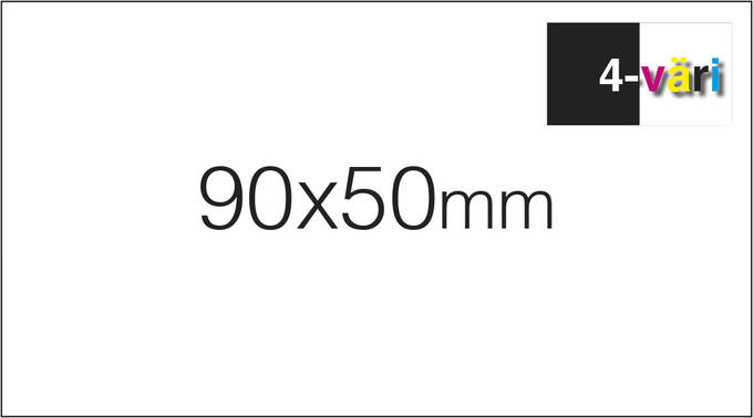 Käyntikorttikartonki 280g. Kortit painetaan nelivärisarjalla (CMYK) yhdelle puolelle. Kortti 50x90mm tai 90x50mm, muut koot +15%. Pakkaus 100 kpl/ käyntikorttilaatikko.