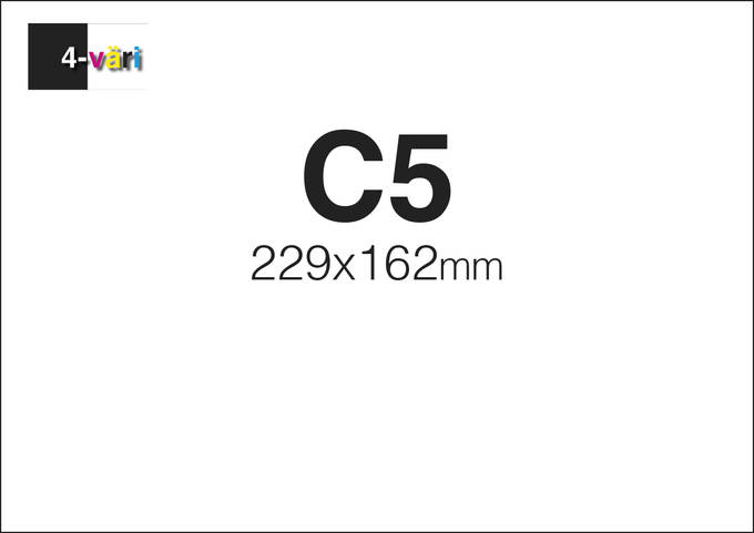Neliväripainatus yhdelle puolelle. Normaali valkoinen teippisuljentakuori.