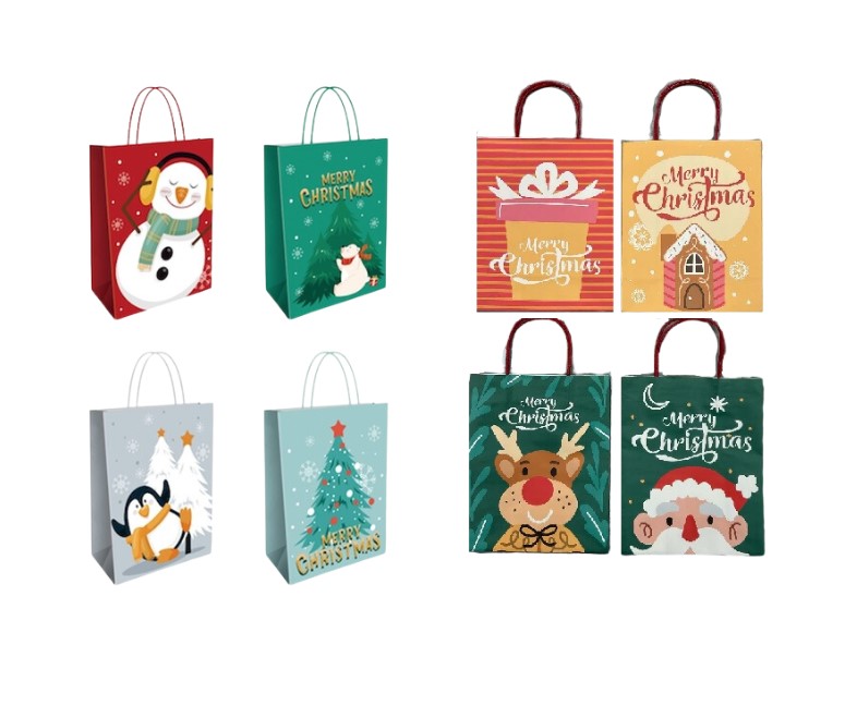 Jouluaiheinen lahjakassi. Kahdeksan kuosivaihtoehtoa. Kuosi valikoituu tilaukselle sattumanvaraisesti.
