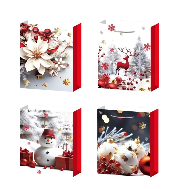 Jouluaiheinen lahjakassi. Neljä värivaihtoehtoa. Väri valikoituu tilaukselle sattumanvaraisesti.