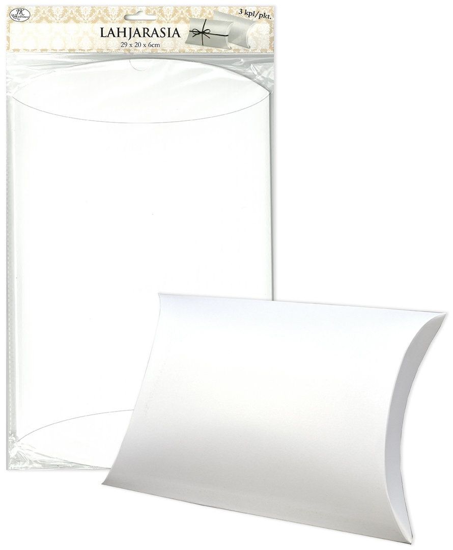Helmiäisvalkoinen lahjarasia. Koko koottuna 29 x 20 x 6cm. Pakkaus sisältää 3kpl lahjarasioita.