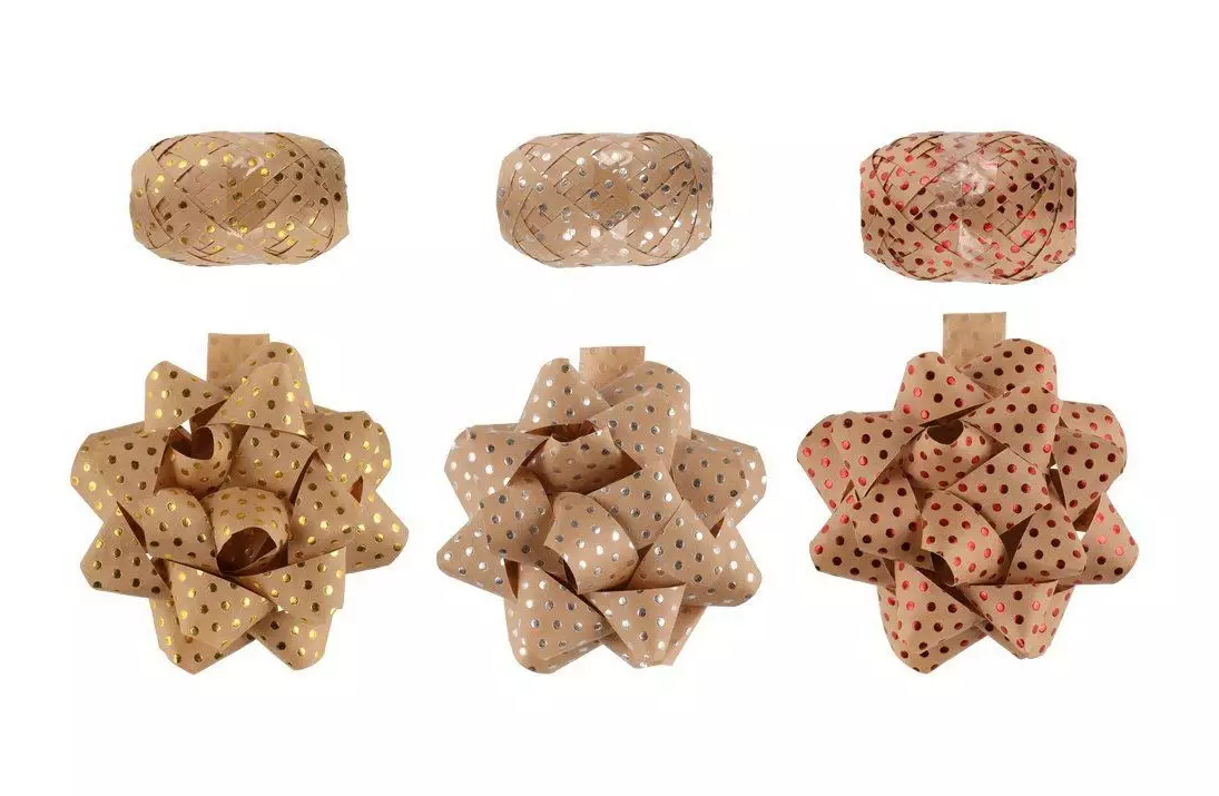 Pakkausessa lahjarusetti tarralla sekä saman värinen lahjanaru.