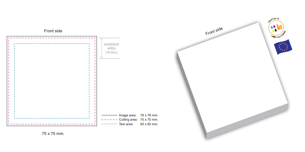 Painettu viestilappu liimareunalla Koko 75x75mm 50 arkkia/nide Valmiista aineistosta Toimitusaika n. 3 viikkoa hyväksytystä vedoksesta